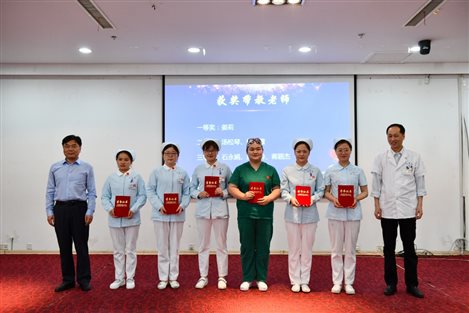 臨床帶教老師是學生的榜樣,我院院長閔濟富和副院長馮天明為在第二屆帶教老師微課比賽獲獎的6位同志頒發(fā)證書。
