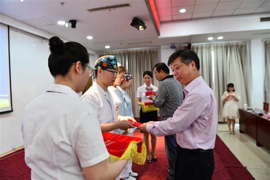 在表彰環(huán)節(jié),為了表彰先進,樹立典型,首先對我院2021年一季度四個一活動中表現(xiàn)突出、充滿斗志的6名優(yōu)秀護理人員進行了頒獎,我院黨委書記葛維朝同副書記丁兆云為獲獎代表頒發(fā)證書,這本本證書,是榮譽,更是今后前進的動力。