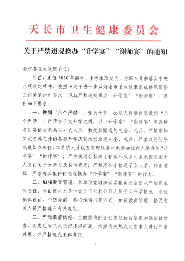 關(guān)于嚴(yán)禁違規(guī)操辦“升學(xué)宴”“謝師宴”的通知