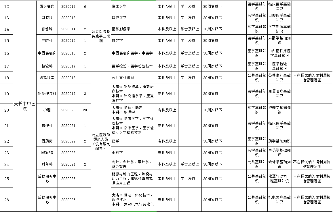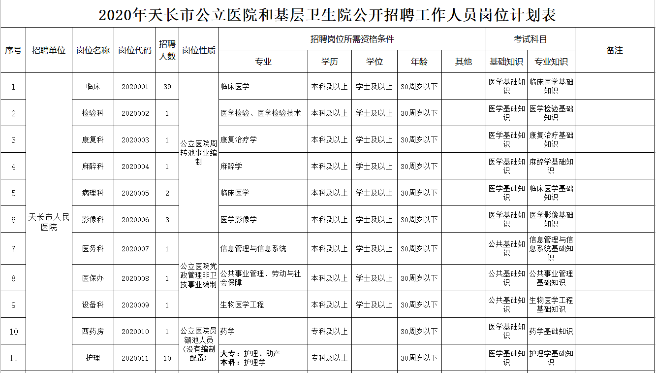 在2020年天長市公立醫(yī)院和基層衛(wèi)生院公開招聘計(jì)劃中安排部分招聘計(jì)劃,用于專項(xiàng)招聘“應(yīng)屆畢業(yè)生”,包括以下人員: